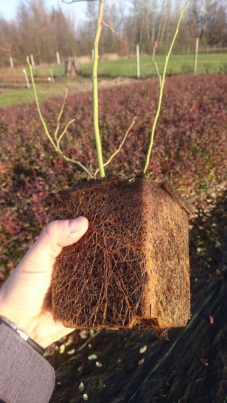 Dwu letnia sadzonka odmiany Duke. Zdrewniała z dobrze rozbudowanym systemem korzeniowym.